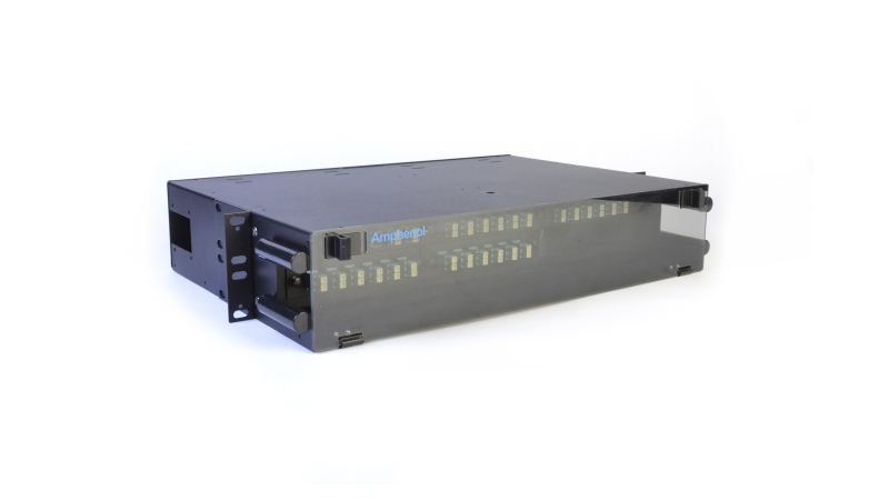 Amphenol的2RU機(jī)架安裝配線架旨在將修補(bǔ)和拼接結(jié)合在同一機(jī)箱內(nèi)。可在19或23個(gè)機(jī)柜中使用安裝架,前后均帶有理線器,并且可容納6至72根光纖,并帶有可選的無需工具的轉(zhuǎn)接板。2RU機(jī)架安裝配線架完全圍住了引線(通常在單獨(dú)的配線架之間布線),從而提供了更好的保護(hù)和更短的線長度。